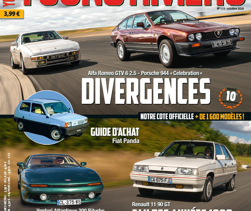 Au programme de Youngtimers n°113 (octobre 2020) : -VOITURE DES COPAINS : Renault 11 90 GT. -SPORT & PRESTIGE : Venturi 300 Atlantique Biturbo. -EXPERTISE : Fiat Panda. -OUBLIEE : Audi Artz. -YOUNG MATCH : Alfa Romeo GTV 6 2.5 & Porsche 944 Celebration. ...