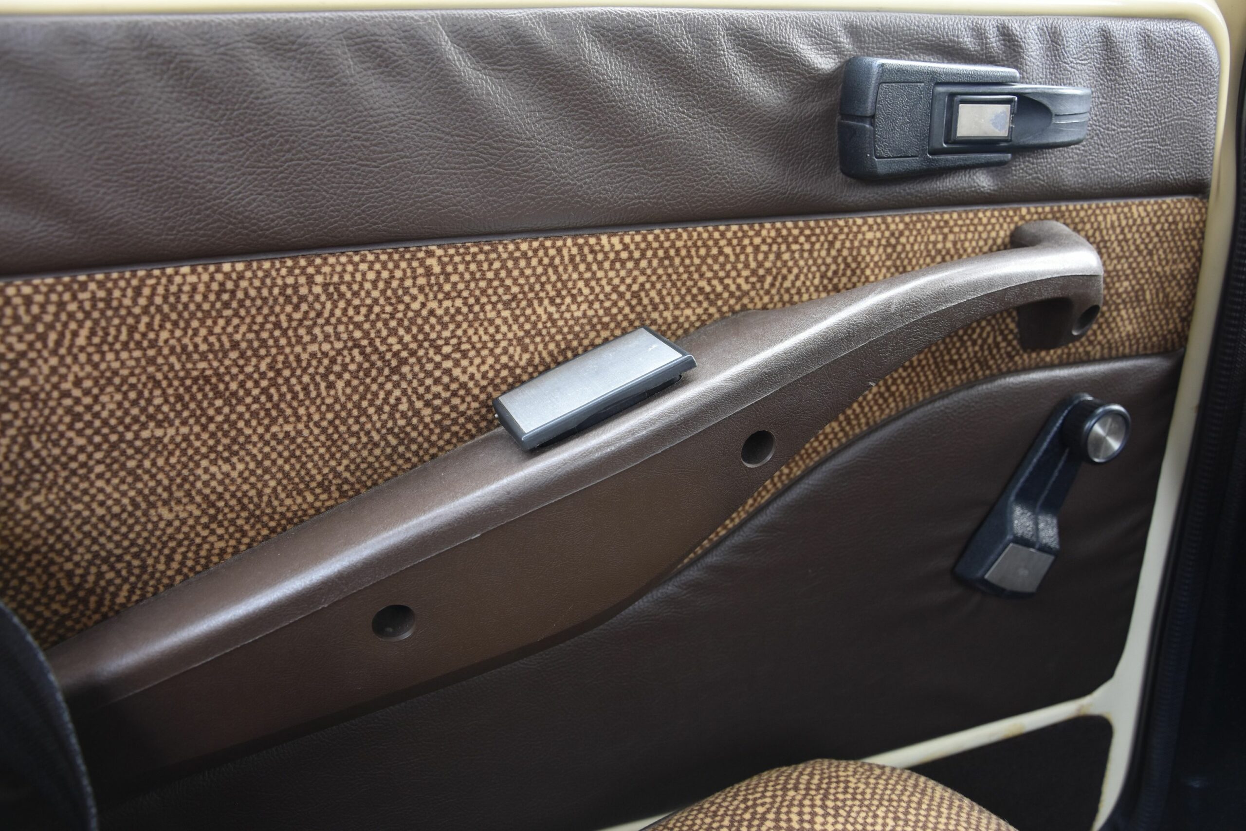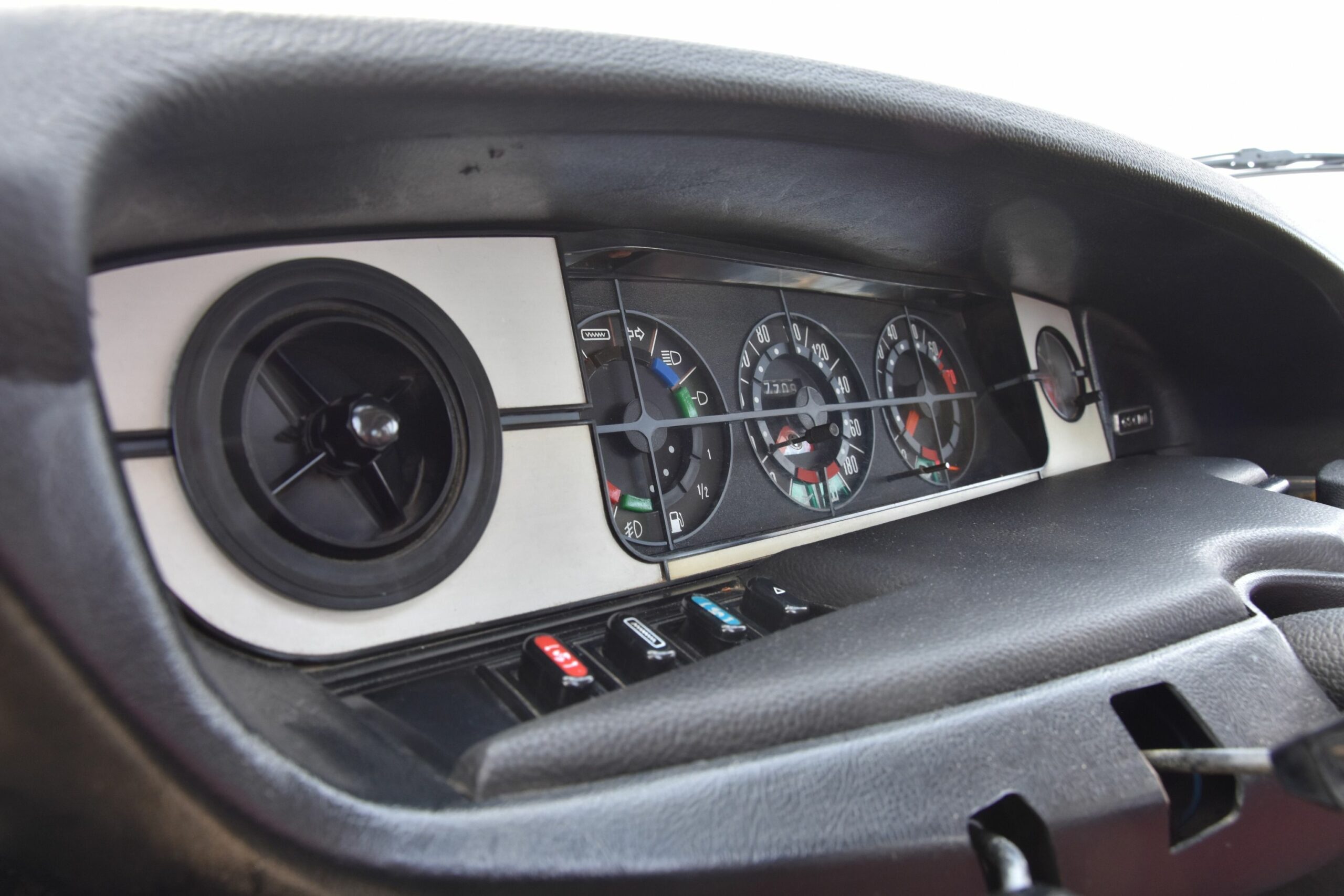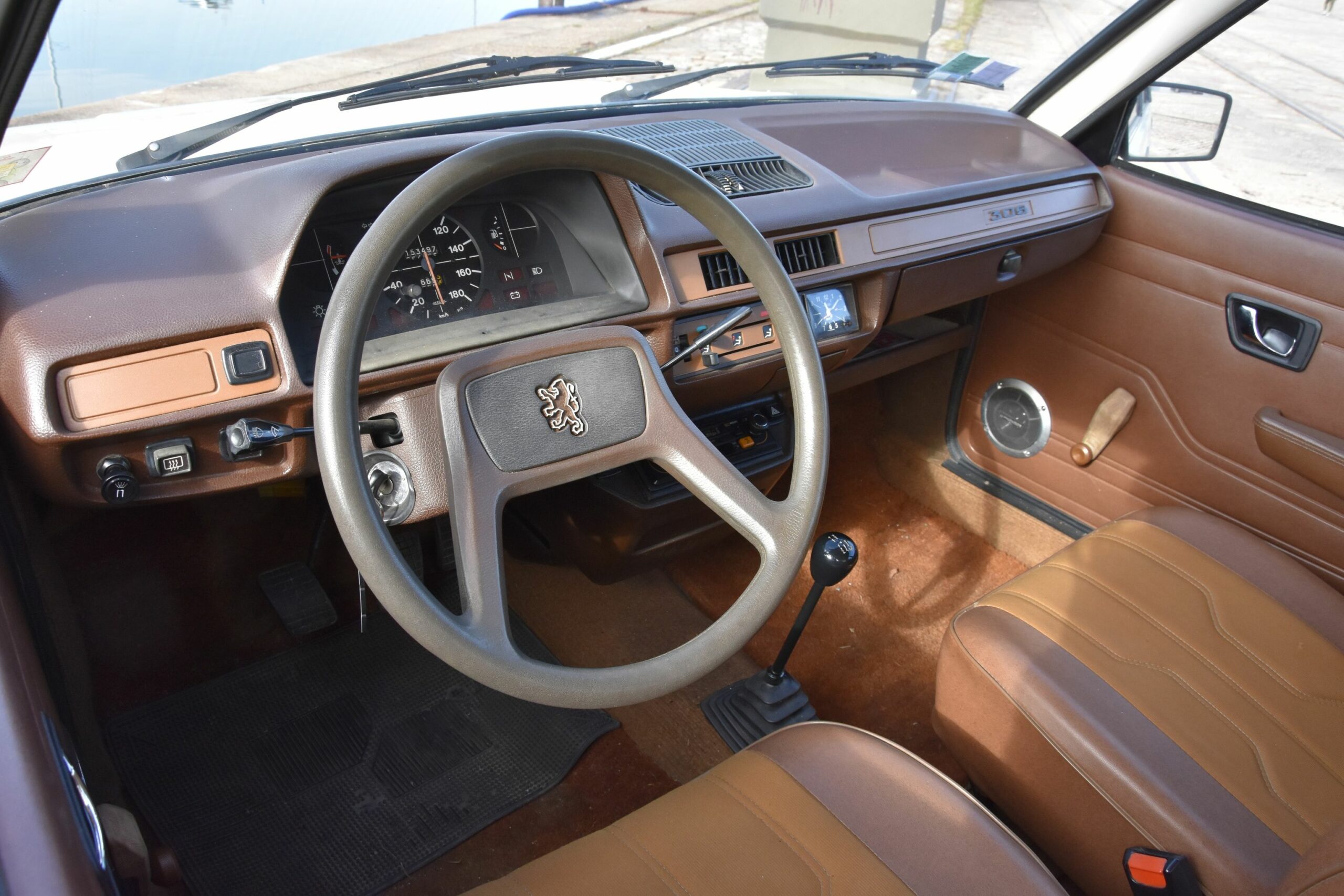 A bord, on sent l’influence BMW dans la haute visière d’instrumentation de la 305, mais Peugeot a toutefois banni le noir au profit d’une belle association de beige considérée comme cossue à l’époque, les teintes de carrosserie froides donnant lieu à une harmonie intérieure bleue. Beaucoup plus singulière, la GS a conservé la planche de bord sculpturale des débuts, qui n’est pas sans rappeler celle de la SM, Notre modèle 79 a cependant perdu l’instrumentation futuriste au profit de classiques compteurs circulaires, de même que les originales poignées d’ouverture de porte en forme d’escargot (d’origine Ami 😎, remplacées ici par des éléments pauvres d’aspect, sans rapport avec les très élégants loquets chromés de la 305. Celle-ci profite de 12 cm de longueur en plus et 7 cm d’empattement supplémentaire, chose facilitée par le moteur transversal, au bénéfice de l’habitabilité. Ses sièges procurent même un moelleux supérieur. Le volume des coffres est quasiment identique et si la GS ne dispose pas de la cinquième porte de la GSA, son seuil de chargement se trouve à hauteur de pare-choc. Du reste, on retrouve les dadas respectifs de chaque marque : volant monobranche positionné à 7h40 roues droite, station de conduite genre sofa et autoradio à chercher entre les sièges pour la Citroën, commandes inversées sur la 305, avec la tige de clignotant à droite et le Neiman à gauche, mais clignotant qui ne revient pas automatiquement sur la GS.