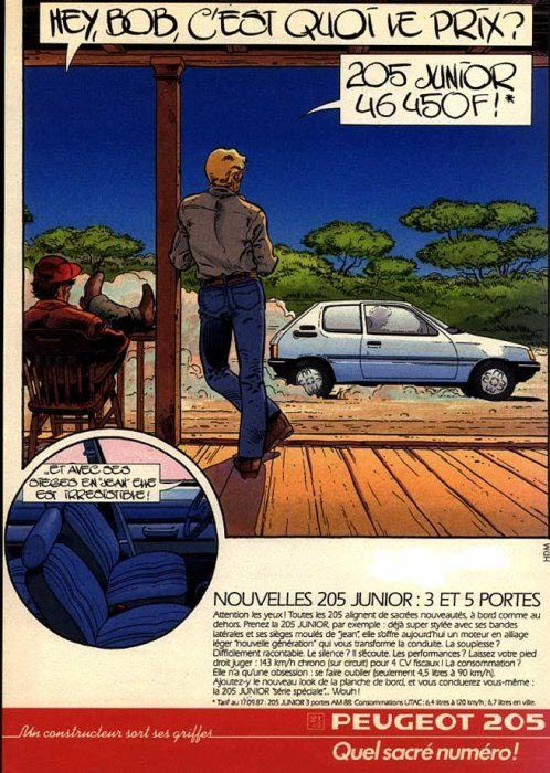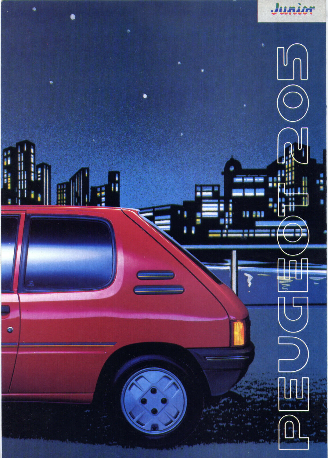 D’où la 205 Junior ! Ses atours : des bandes adhésives rose, bleu et menthe le long de la carrosserie et les enjoliveurs de custode avec un rappel sur le volet arrière, des joncs chromés de pare-chocs, des couvre-jantes type XR/GR assortis à la caisse lorsque celle ci est blanc Meije (un gris Futura était disponible en supplément) et surtout une sellerie en blue jean à surpiqûres multicolores et appuis-tête. C’est tout, mais cela suffit à faire un carton, bien soutenu la petite vignette (4CV), le prix d’attaque inférieur à 50.000 franc et des campagnes ciblées sur fond de culture rock gentillette. « Elle s’habille en jeans et sort en bandes ! » martèlent les pages de pub. « Oh la belle 205 Junior, à l’intérieur plus personne t’ignore ! » chante dans le film télé un émulateur de Johnny sur l’air d’ « Elle est terrible ». Le réseau Peugeot a même distribué une cassette audio !