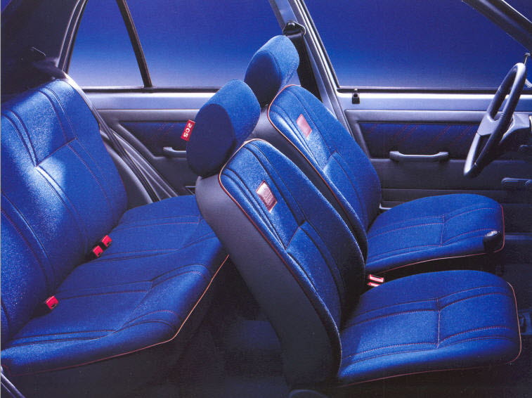Avant la 205 Junior, en 1985, PSA avait sorti un autre véhicule équipé avec un intérieur en jean: la Talbot Samba Bahia! Seulement disponible en Bleu Ming métallisé. Striping bleu, rose et vert, même sur les enjoliveurs (type Profil) en couleur caisse!