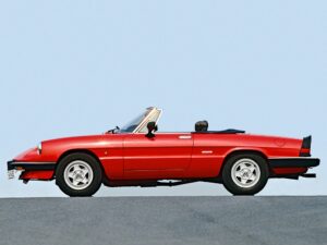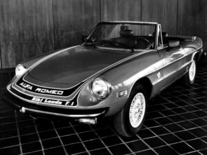 En 1978, l’ex-Spider Duetto accuse déjà 12 ans de présence au catalogue Alfa Romeo. Depuis le remplacement du « coupé Bertone » par l’Alfetta GT(V), c’est le dernier membre de la famille Giulia encore fabriqué, et l’un des derniers cabriolets biplaces traditionnels vendus aux Etats-Unis avec la MGB, la Triumph Spitfire et la Fiat 124 Spider. Traditionnel, le Spider l’est cependant dans le bon sens du terme avec son fameux moteur deux litres à double arbre positionné à l’avant, ses roues arrière motrices et sa capote ouvrable en un clin d’œil sans descendre de la voiture ou presque. Son style daté s’inspire tout du même du prototype Superflow IV de 1959 et contrairement à une croyance répandue, sa silhouette à flancs creux et poupe molle, dessinée par Aldo Bravarone et Franco Martinengo chez Pininfarina, n’a pas fait l’unanimité à sa sortie. Surtout comparée aux précédentes Giulietta et Giulia Spider que certains considèrent comme les chefs d’œuvre absolu de la carrosserie italienne ! Ce qui a motivé un « coup de hache » salutaire en 1971 pour donner de l’allure et du nerf à ce qui ressemble à un profil de céphalopode privé de ses huit bras…